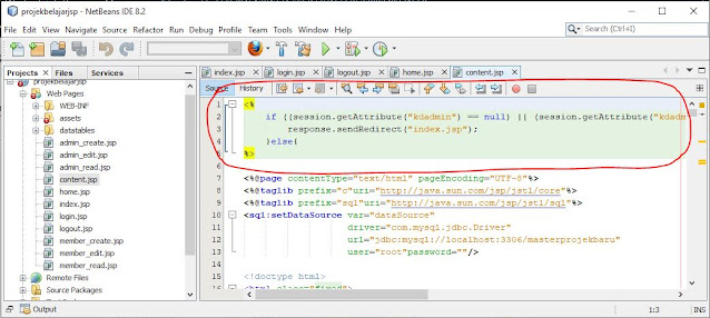 5. buka content.jsp pada awal tambahkan scrip sebagai berikut